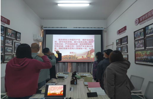 重温一遍入党誓词。2021年4月2日,人事处与国交中心联合党支部、高教研究与质量评估中心党支部联合开展党史学习研讨会议。会上,支部全体党员同志佩戴党徽,面向鲜艳的党旗,声音洪亮,重温了入党誓词。此次宣誓让每名同志受到了一次心灵的洗礼,更加坚定了各位同志爱党、信党、跟党走的决心和理想信念。