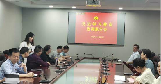 为更好地营造“学党史、悟思想、办实事、开新局”的浓厚氛围,扎实推动党史学习教育深入基层,深入群众,深入人心,4月30日,在至善楼第二会议室开展了党史学习教育宣讲,教务处、高教研究与质量评估中心、图书馆、招标采购办、网络与教育技术中心、资产设备处、创新创业学院等部门参加宣讲报告会。